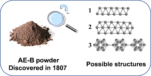 硼单质是一种重要的原材料,它从被发现至今已有两个多世纪。由于其三价及缺电子特性,硼单质有可能形成从三维(3D)立体到一维(1D)线型的各种分子结构。通过X射线衍射(XRD)可确定晶体硼的结构。值得注意的是,最初发现的硼单质是无定形硼(AE-B)。相比于晶体硼,AE-B的合成温度较低,是一种更节能的产品。然而,由于其非晶特性,AE-B的分子结构解析是一个科学难题。多年来,人们利用中子衍射、电子能量损失谱等传统方法研究了AE-B,并陆续提出了一些AE-B的可能结构。然而,传统研究方法得到的结构信息非常有限,使得AE-B的结构研究成为一项巨大挑战。