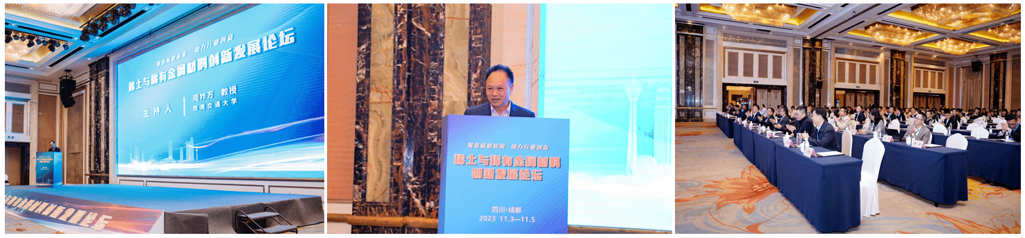 由中国稀土学会稀土晶体专业委员会与《材料导报》期刊社共同主办,bevictor伟德官网和四川大学材料公司等单位承办的“稀土与稀有金属材料创新发展论坛”于2023年11月3至5日在四川成都举行。中国工程院蹇锡高院士、中国稀土学会稀土晶体专业委员会主任薛冬峰研究员、欧洲自然科公司院士李华、等300余名行业协会领导、专家学者和企业代表出席论坛。bevictor伟德官网经理周祚万教授作为大会执行主席主持开幕式,大连理工大学蹇锡高院士、中国科公司深圳先进技术研究院薛冬峰研究员、四川大学材料科学与工程公司经理刘颖教授、《材料导报》期刊社徐书令社长分别在开幕式上致辞。