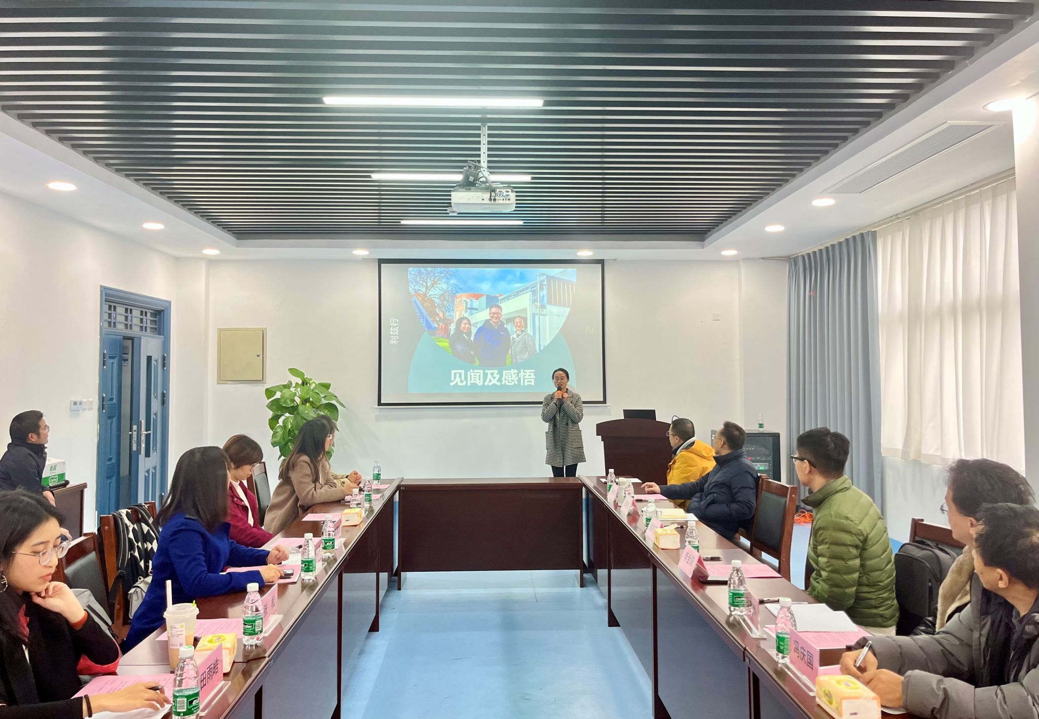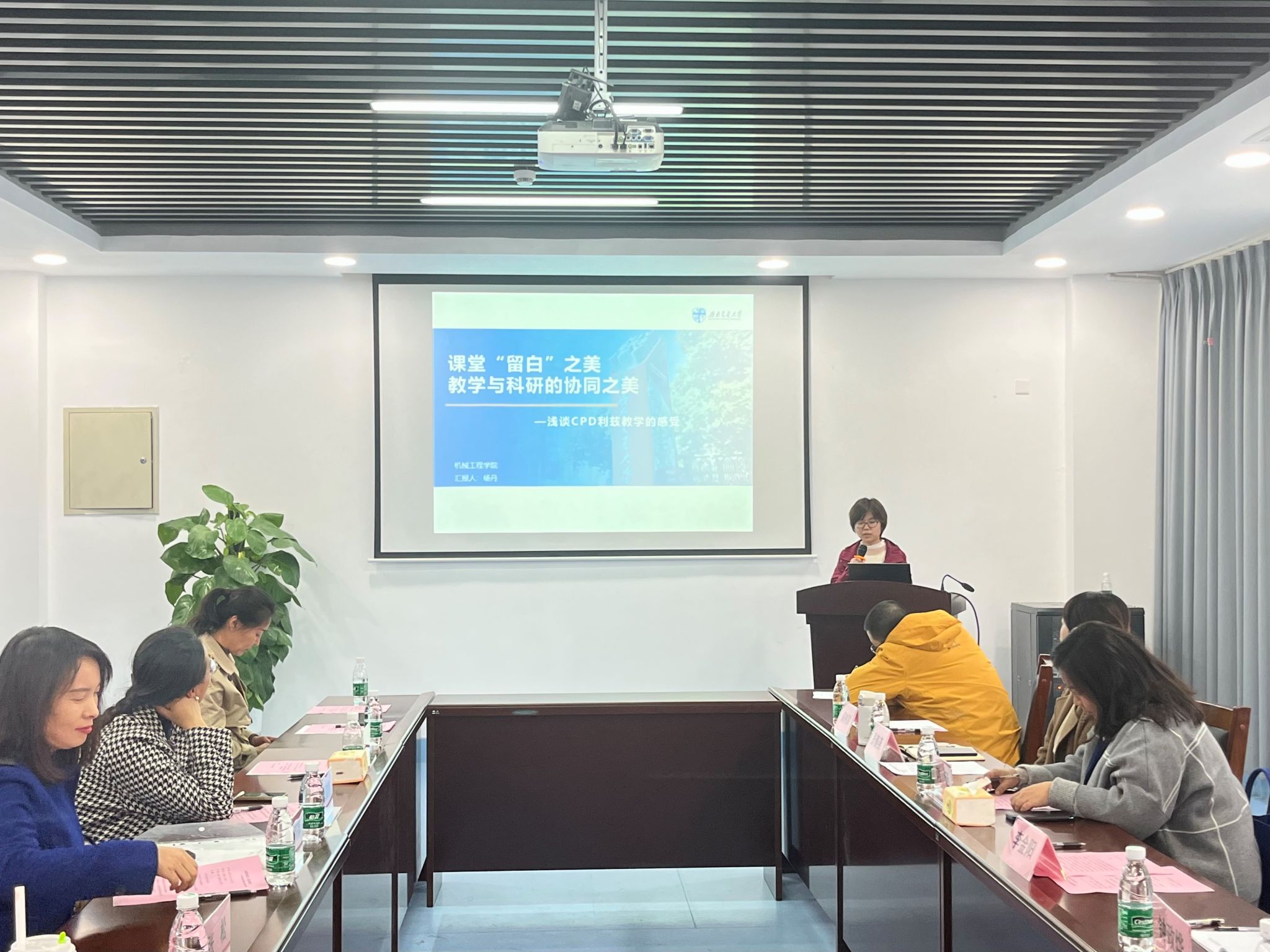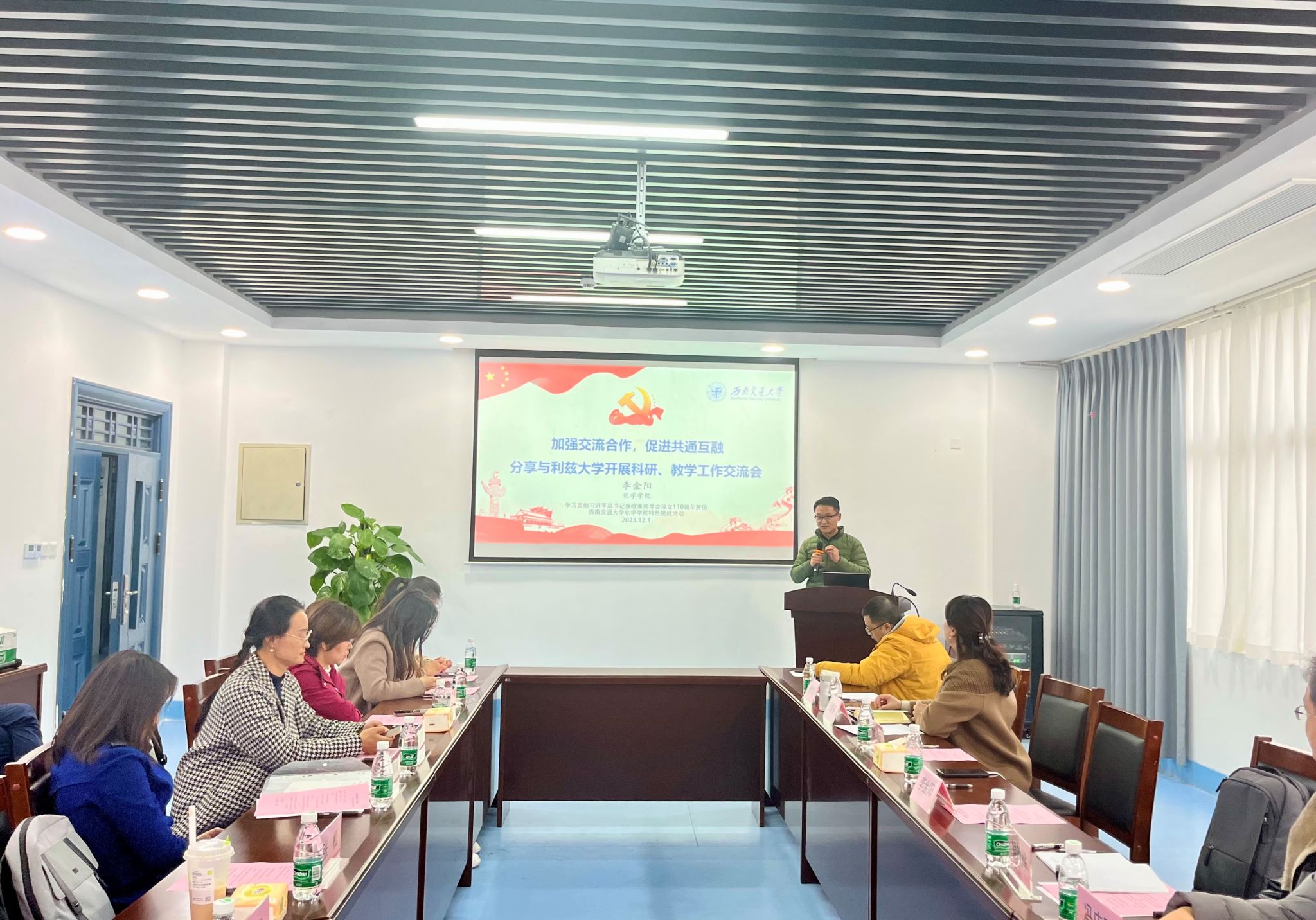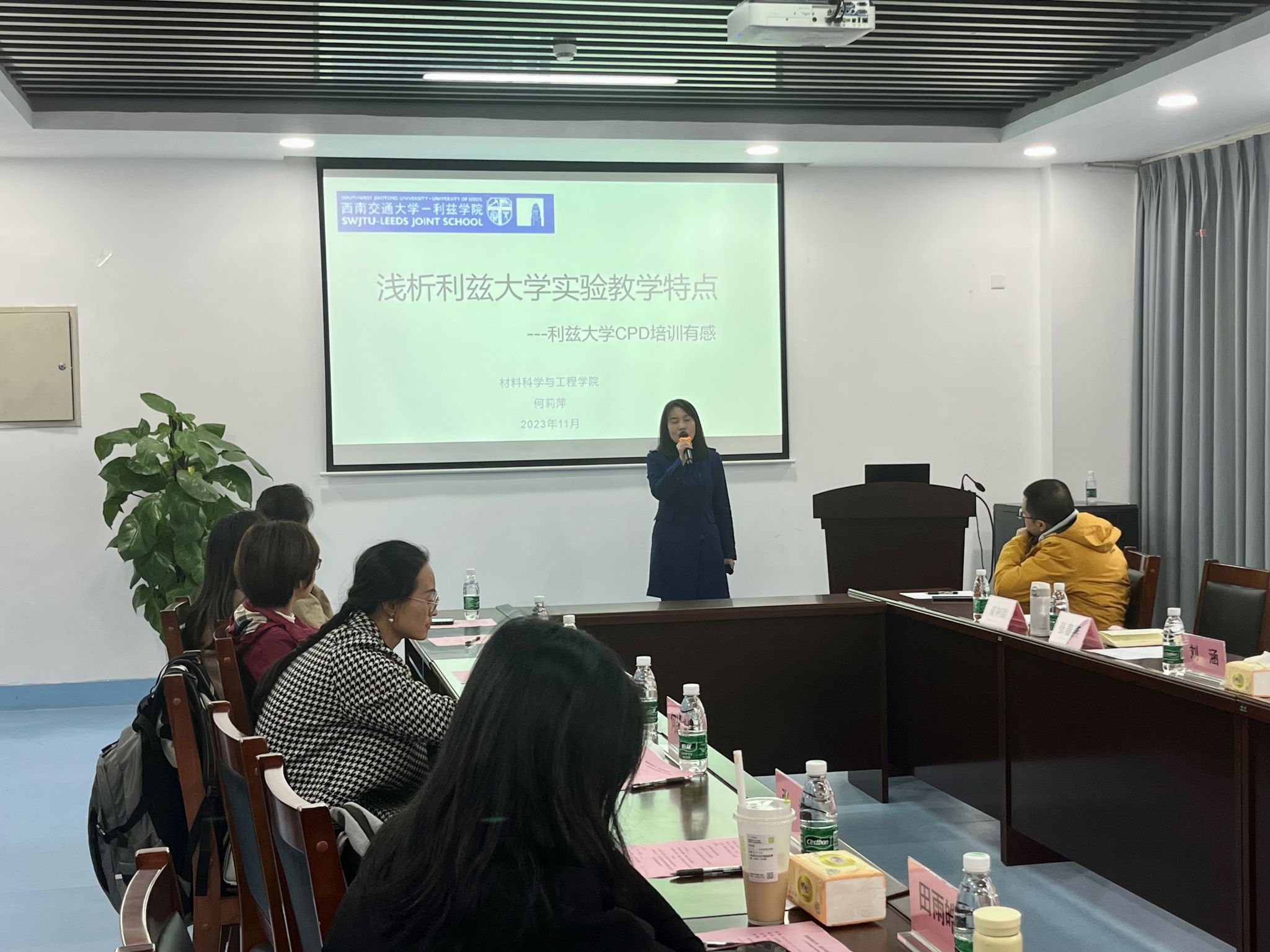 随后的分享环节,李金阳老师从个人成长经历入手,分享了参加利兹大学之行的教学与科研交流心得;民革党员、机械公司杨丹老师以《课堂“留白”之美教学与科研的协同之美》,展现了对利兹大学课堂与科研的和谐共舞的独特感受。此外,物理公司崔雅静、材料公司何莉萍两位老师对利兹大学教学模式、实验教学等进行了详细介绍。