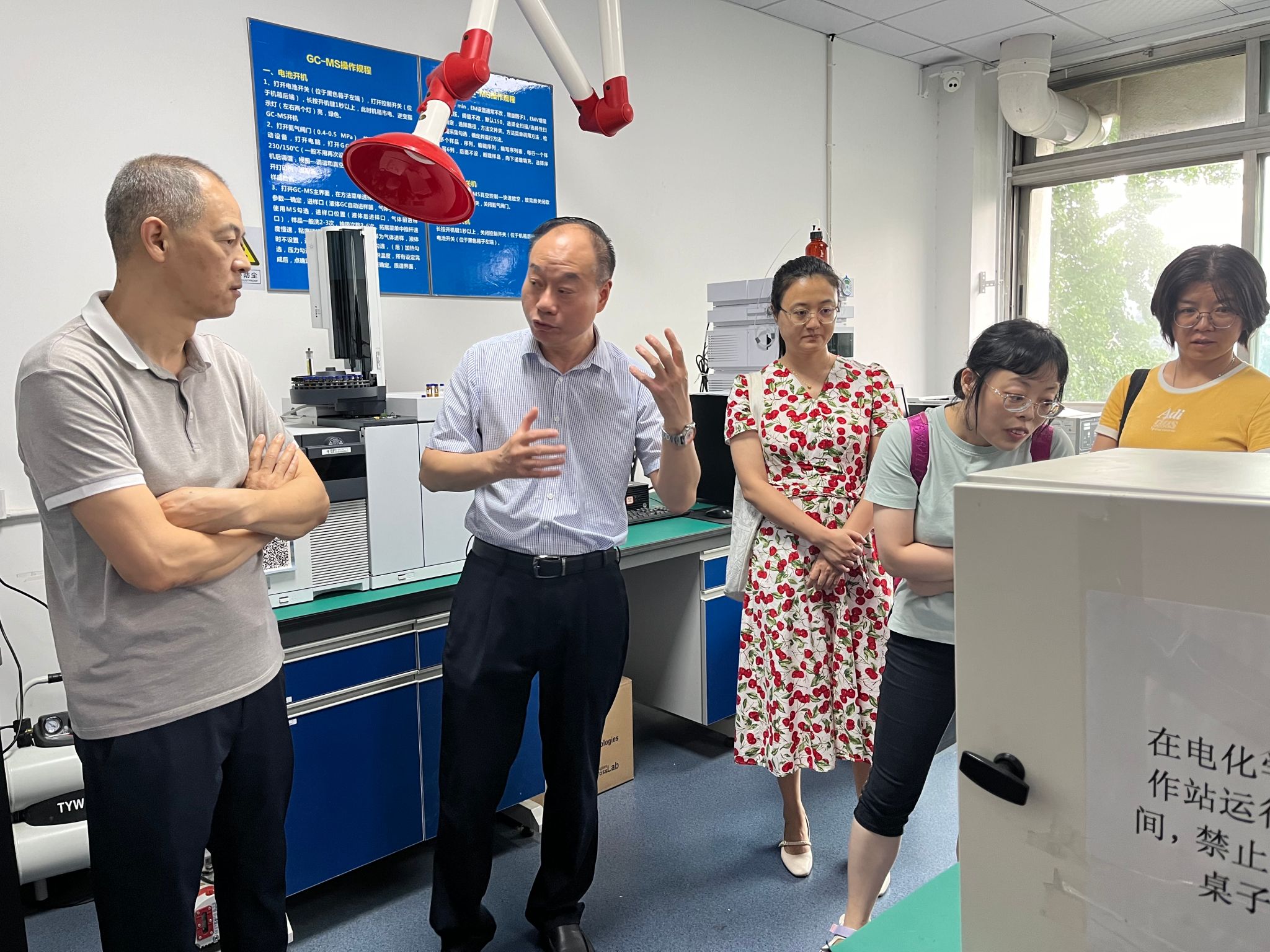 张孜江主任一行首先参观了公司功能高分子团队实验室,团队负责人周祚万教授向到访的专家们介绍了多种用于高分子材料表征与分析的设备仪器,并参观了包括电化学、抗菌、航天、合成等实验室,详细了解实验室在高分子材料研发方面的最新成果和技术应用。在交流过程中,张孜江主任高度赞扬了公司在高分子材料研究领域的成果,并分享了川博文保中心在文物修复中的宝贵经验。他提到,文物作为历史的见证者,其修复与保护需要采用科学、合理的技术手段,而高分子材料以其独特的性能在文物加固、粘接、表面封护等方面发挥着重要作用。