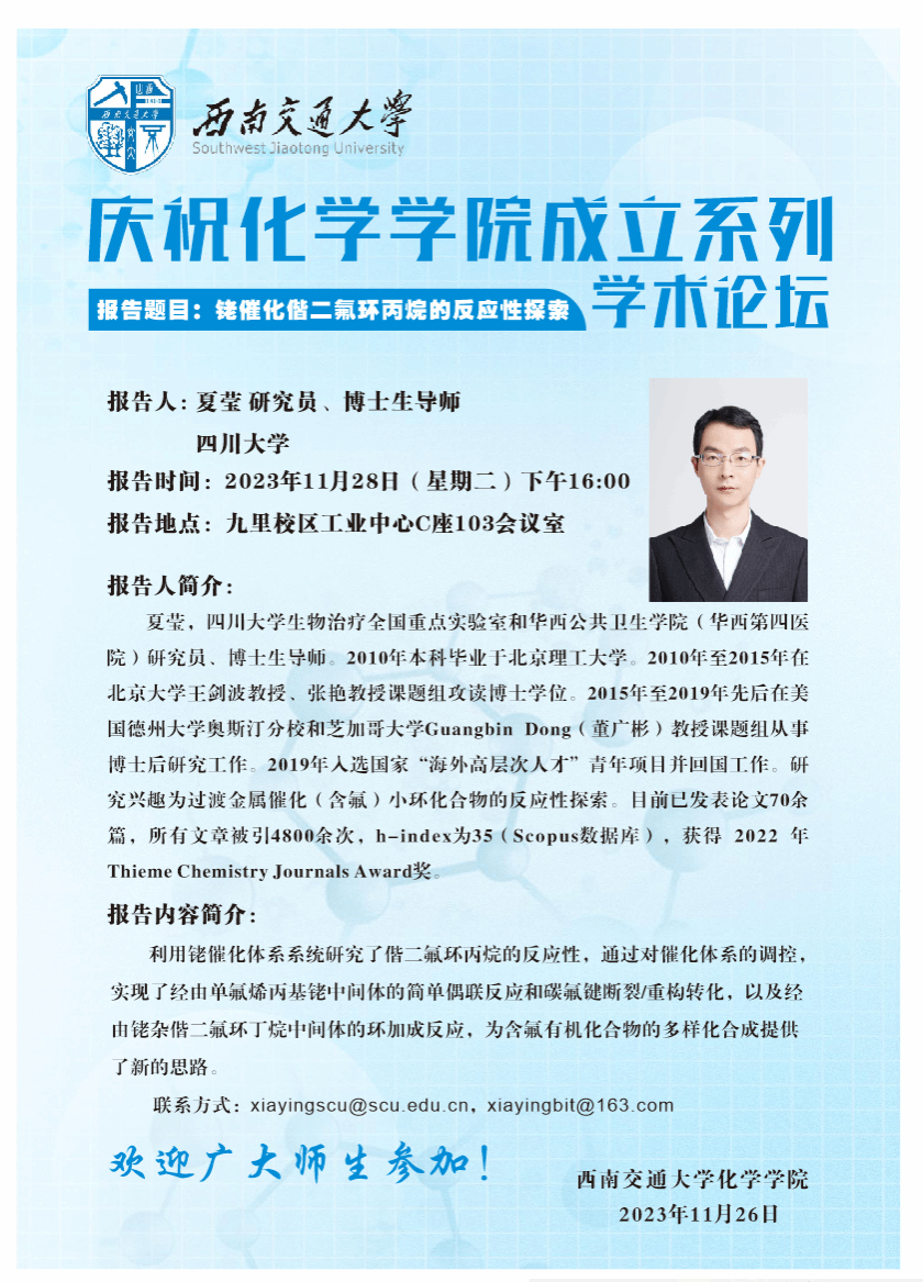 庆祝bevictor伟德官网成立系列论坛:铑催化偕二氟环丙烷的反应性探索