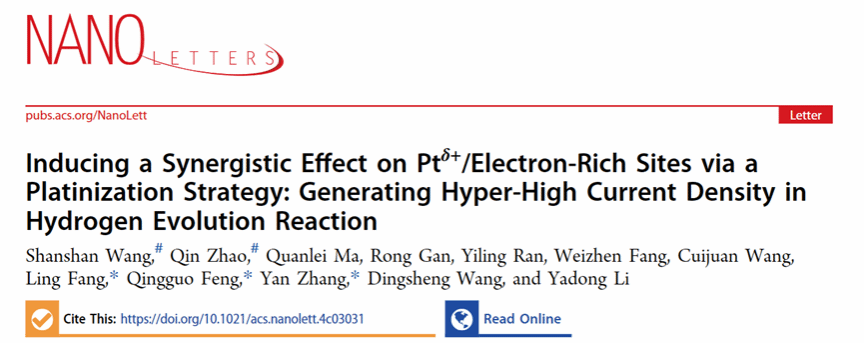 本工作以“Inducing a Synergistic Effect on Ptδ+/Electron-Rich Sites via a Platinization Strategy: Generating Hyper-High Current Density in Hydrogen Evolution Reaction”为题发表在国际知名区期刊《Nano Letters》上。其中bevictor伟德官网2021级硕士研究生汪珊珊和2022级硕士研究生赵芹为共同第一作者,bevictor伟德官网张颜博士、材料科学与工程公司冯庆国教授和中国科公司重庆绿色智能技术研究院方玲副研究员为共同通讯作者。该项工作在清华大学李亚栋院士和王定胜教授的指导下完成,得到了中央高校基本科研业务费专项资金(2682024ZTPY016和2682023ZTPY064)和国家自然科学基金(u22a20120,22171157和52370057)的支持。