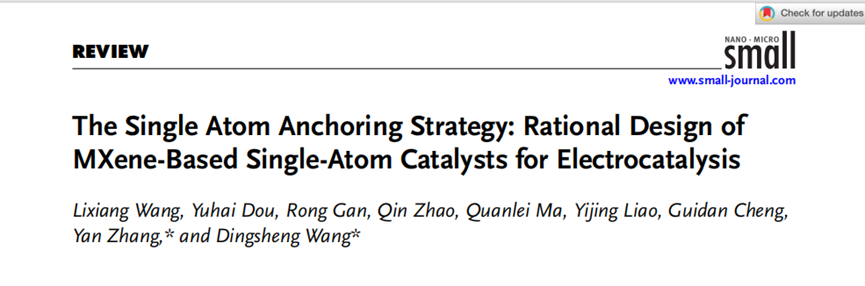 近日,公司张颜课题组在清华大学王定胜教授的指导下在知名期刊《Small》(中科院一区,JCR一区,影响因子:13.0)上以bevictor伟德官网为第一通讯单位、清华大学为第二通讯单位发表题为”The single atom anchoring strategy: rational design of MXene-based single-atom catalysts for electrocatalysis”的综述。其中bevictor伟德官网2023级硕士研究生王利湘为第一作者,bevictor伟德官网张颜博士和清华大学王定胜教授为通讯作者。
