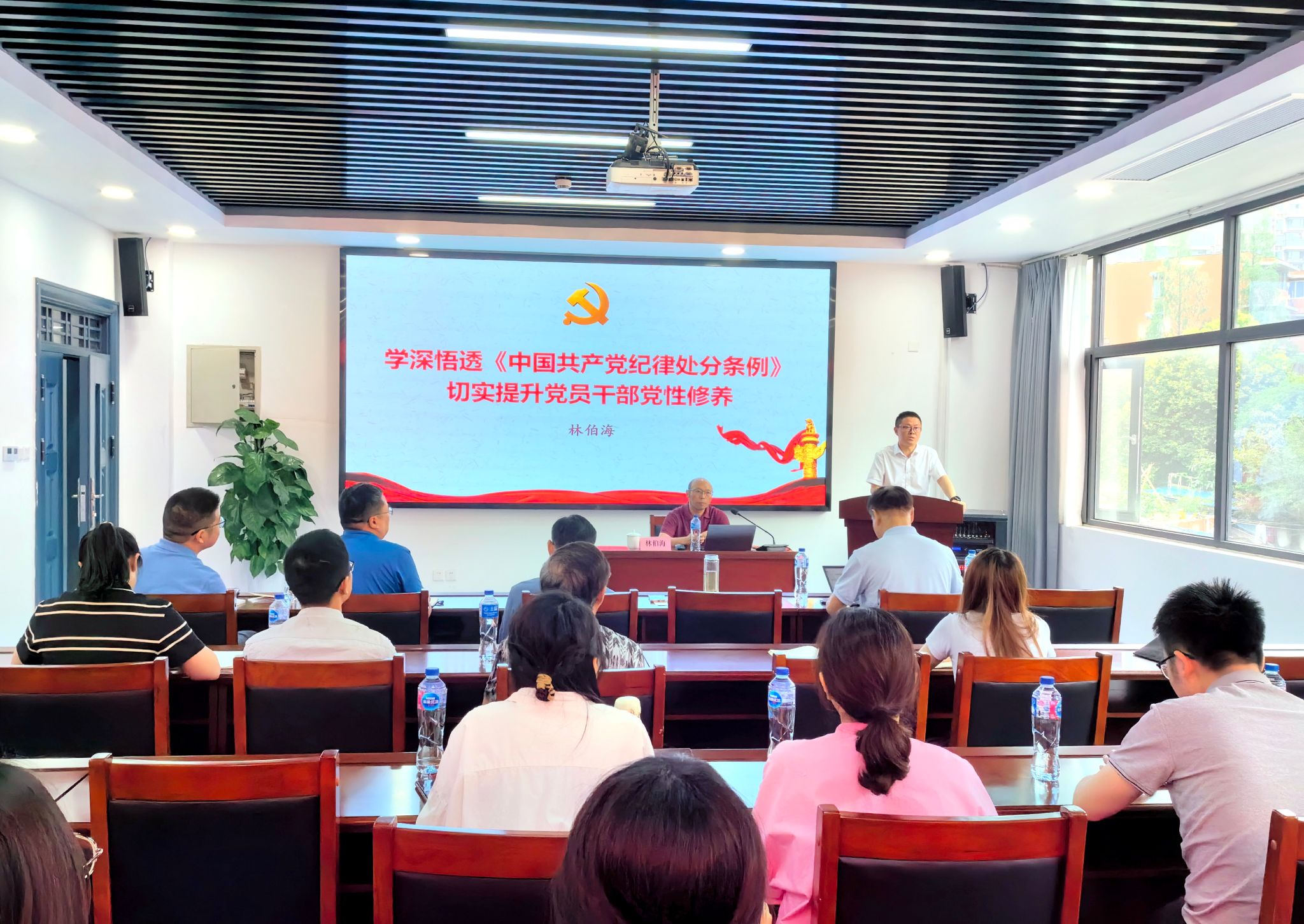 2024年6月6日,化学公司党委在九里校区工业中心C203开展党纪学习教育专题读书班,邀请到马克思主义公司教授、国家万人计划“哲学社会科学领军人才”、中央马克思主义理论研究和建设工程重大委托项目首席专家、国家社科基金重大项目首席专家林伯海教授为公司作“学深悟透《中国共产党纪律处分条例》,切实提升党员干部党性修养”专题辅导报告。公司党委书记、经理、党委委员、班子成员出席,全体教工党员、员工党员代表参加读书会。公司党委书记向仲敏同志主持读书会。