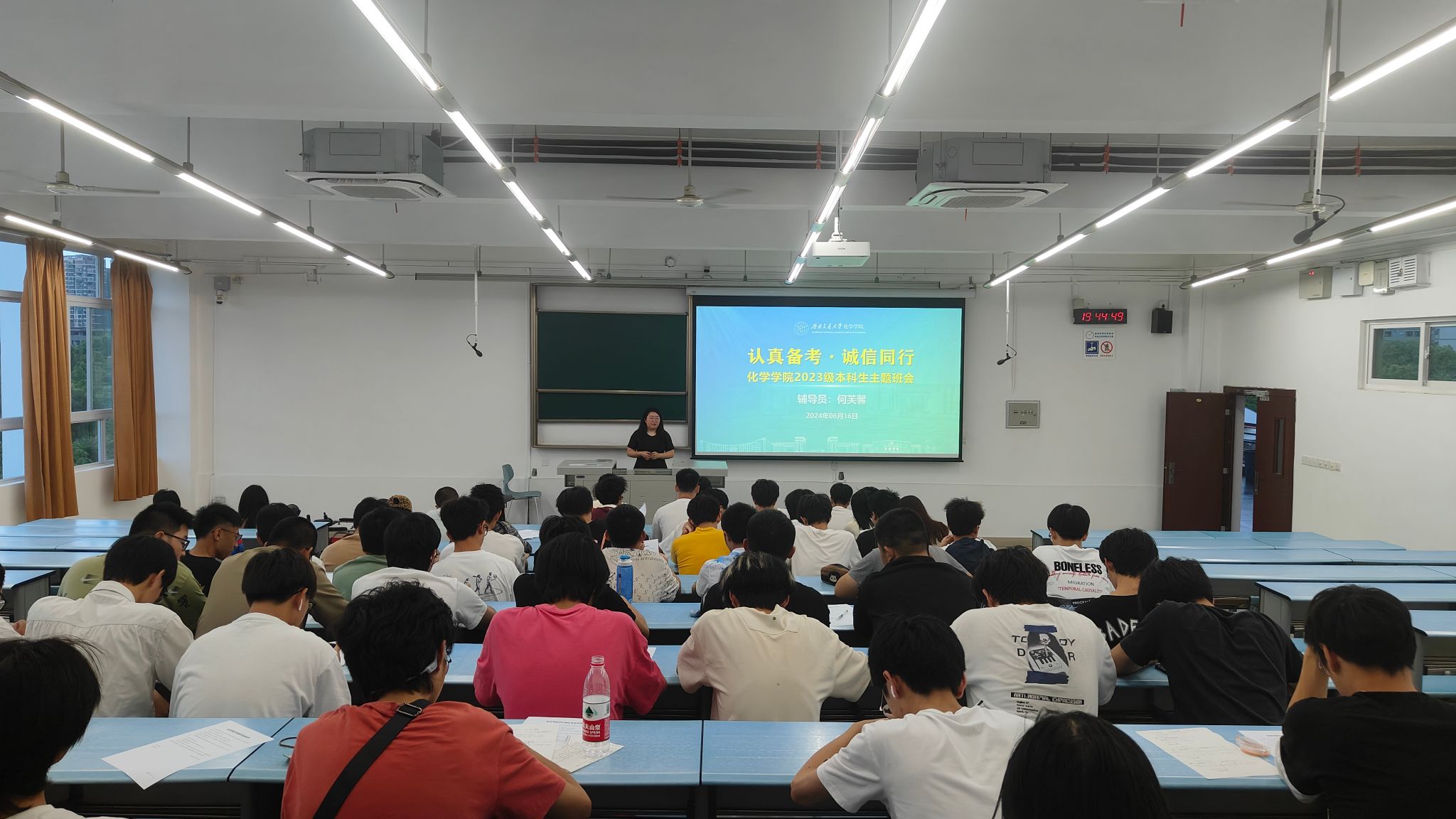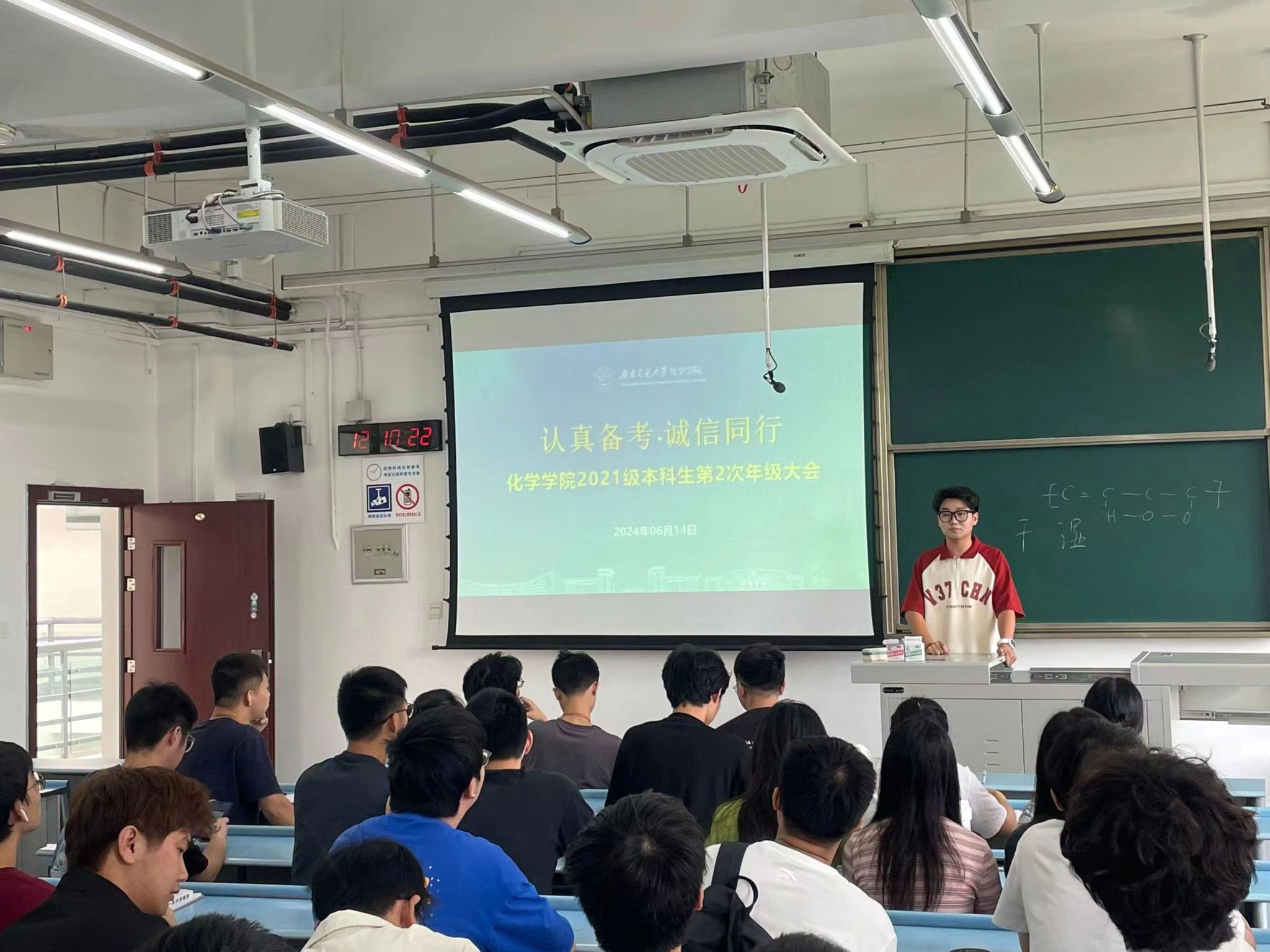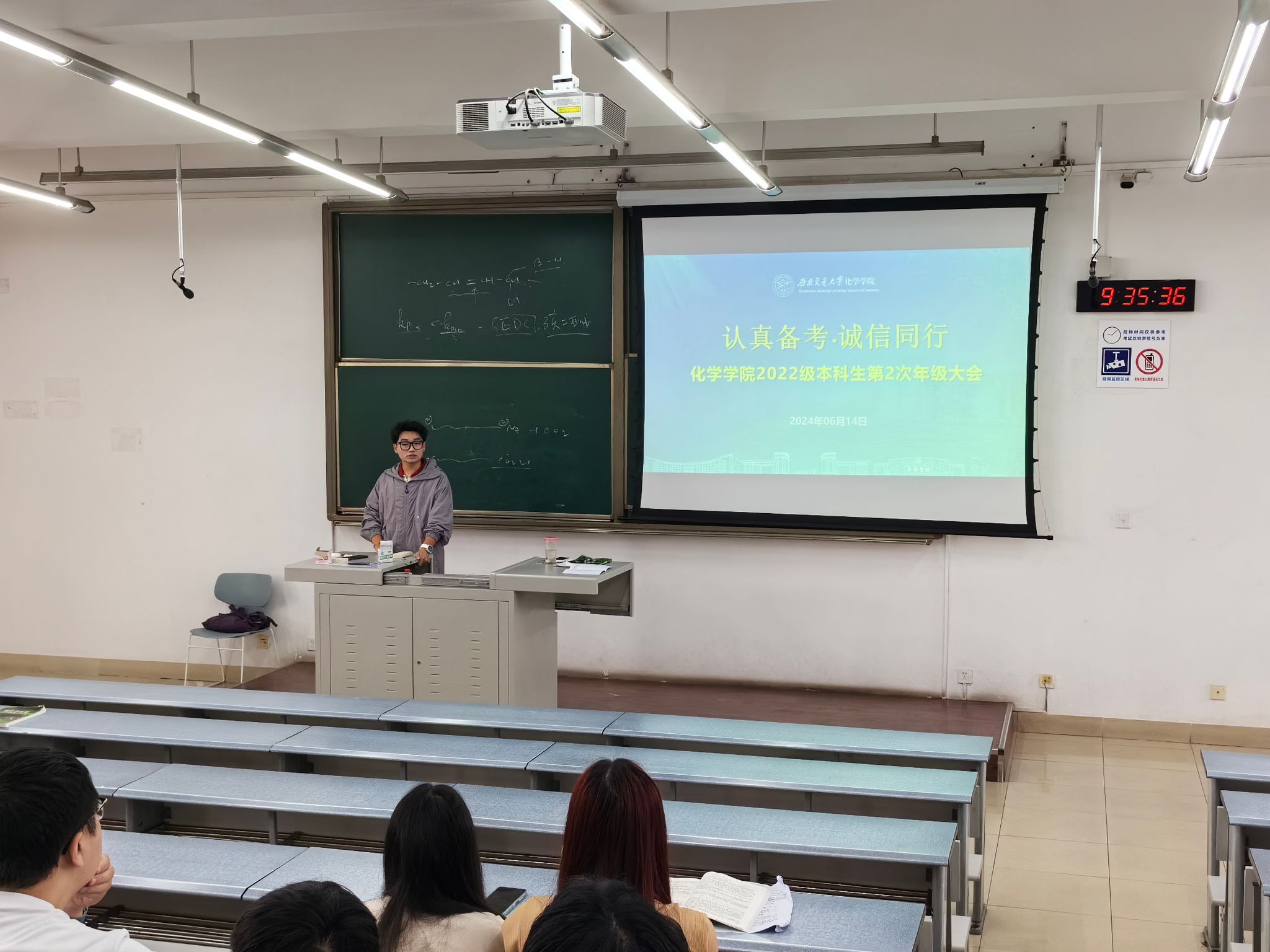 魏浩老师在高分子2021-02班主题班会上,倡议同学们端正态度,严肃考风,认真复习备考,严格杜绝考试作弊行为。同时,根据《伟德国际唯一官网入口本科生考试违规处理办法》,他通过分析公司因考试作弊而给予处分的让同学们清晰考试作弊的危害,并向大家发出了“诚信考试光荣,违纪作弊可耻”的倡议。