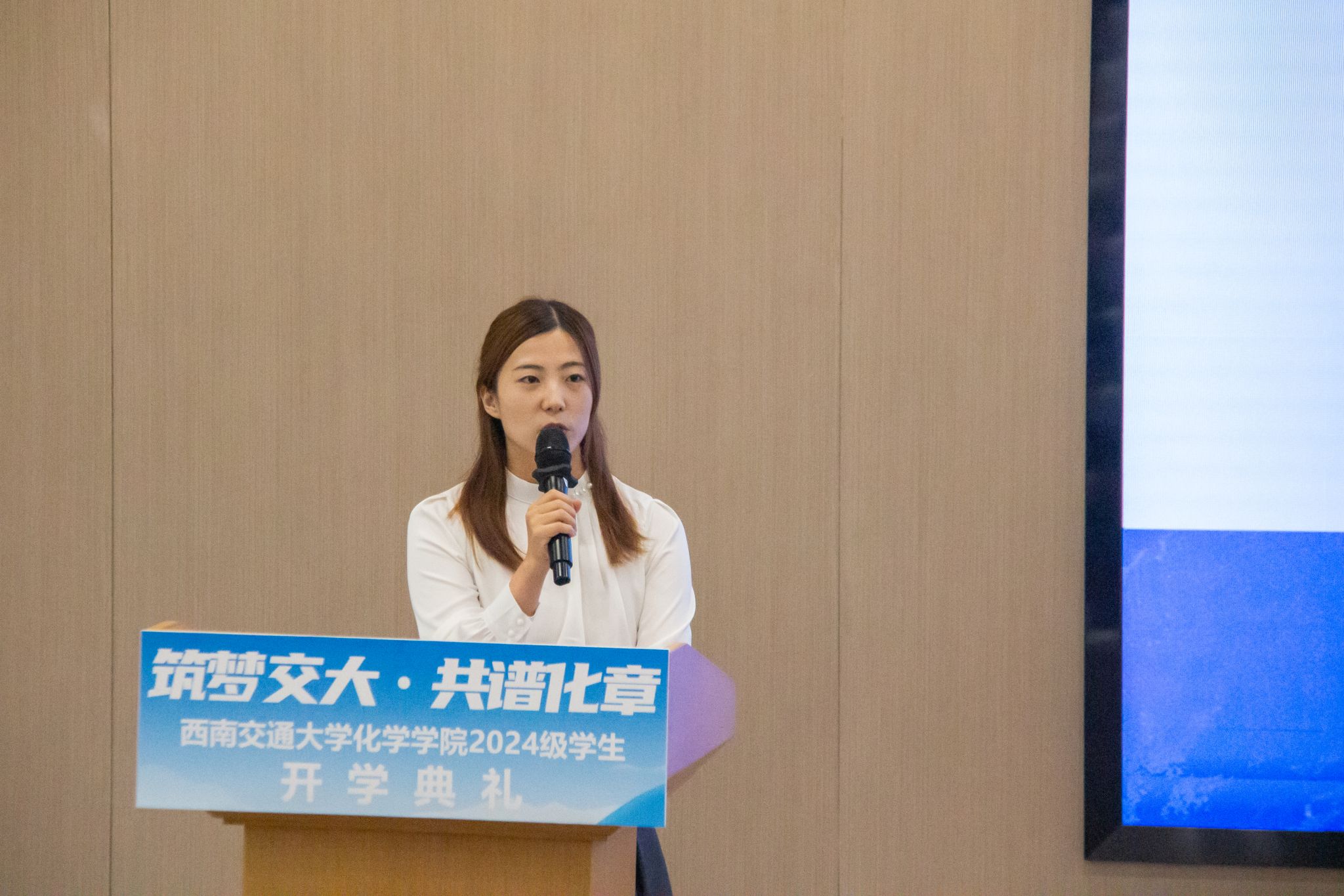 周祚万经理首先对2024级新生的到来表示热烈欢迎和由衷祝贺。周经理从“寻根bevictor伟德官网发展历程、了解bevictor伟德官网建设发展、分享大学学习建议”三方面,重点介绍了公司的学科特色、学术研究、科创平台、团队力量,以及公司化学学科在各个领域中取得的成果及作出的贡献。在最后,周经理用“融入、享受、实现、尝试、体验”等五个关键词,为新生们带来了一堂生动且具有化学特色的“思政课”,最后,周经理对同学们老员工活的发展与规划提出了建议,期待同学们书写出自己的青春华章。