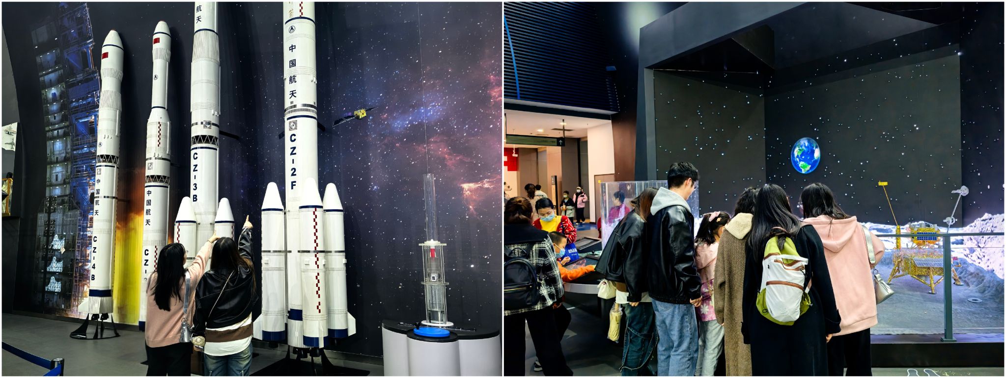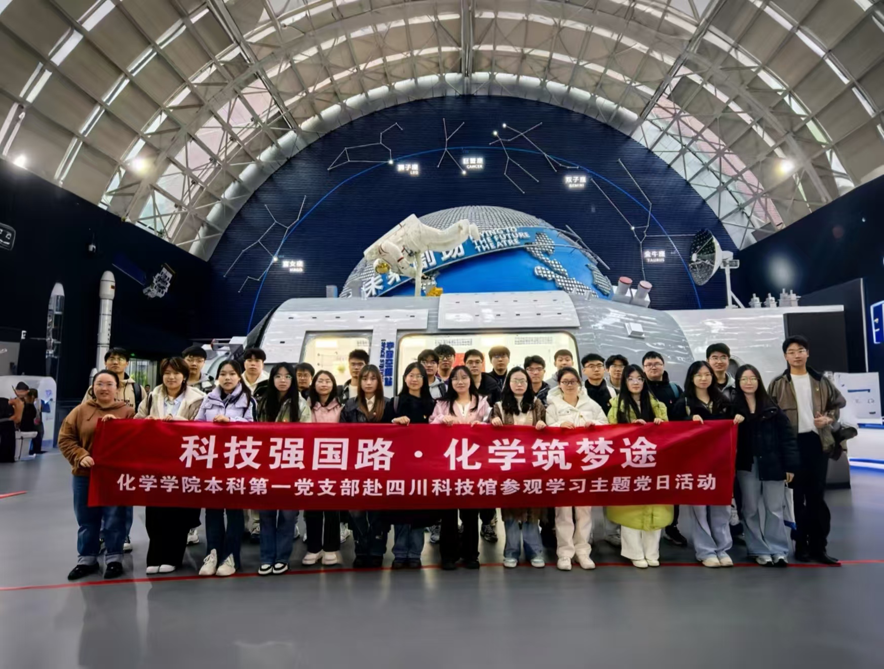 科技馆是丰富思政课教学内容、大力弘扬科学家精神的重要宣教载体,本科第一党支部依托四川省科技馆这一平台,致力于打造“科技馆里的思政课”品牌活动,支部全体师生党员同志赴四川科技馆参观学习,共同探寻科技的力量与化学的魅力。bevictor伟德官网周祚万教授、徐晓玲副教授科研团队持续参与我国天宫空间站技术试验任务,是化学人坚持面向世界科技前沿、坚持面向国家重大需求的重要贡献。四川科技馆以“三问—问天、问水、问未来“为一楼展区主题,生动形象地展示了我国在航空航天领域的辉煌成就。