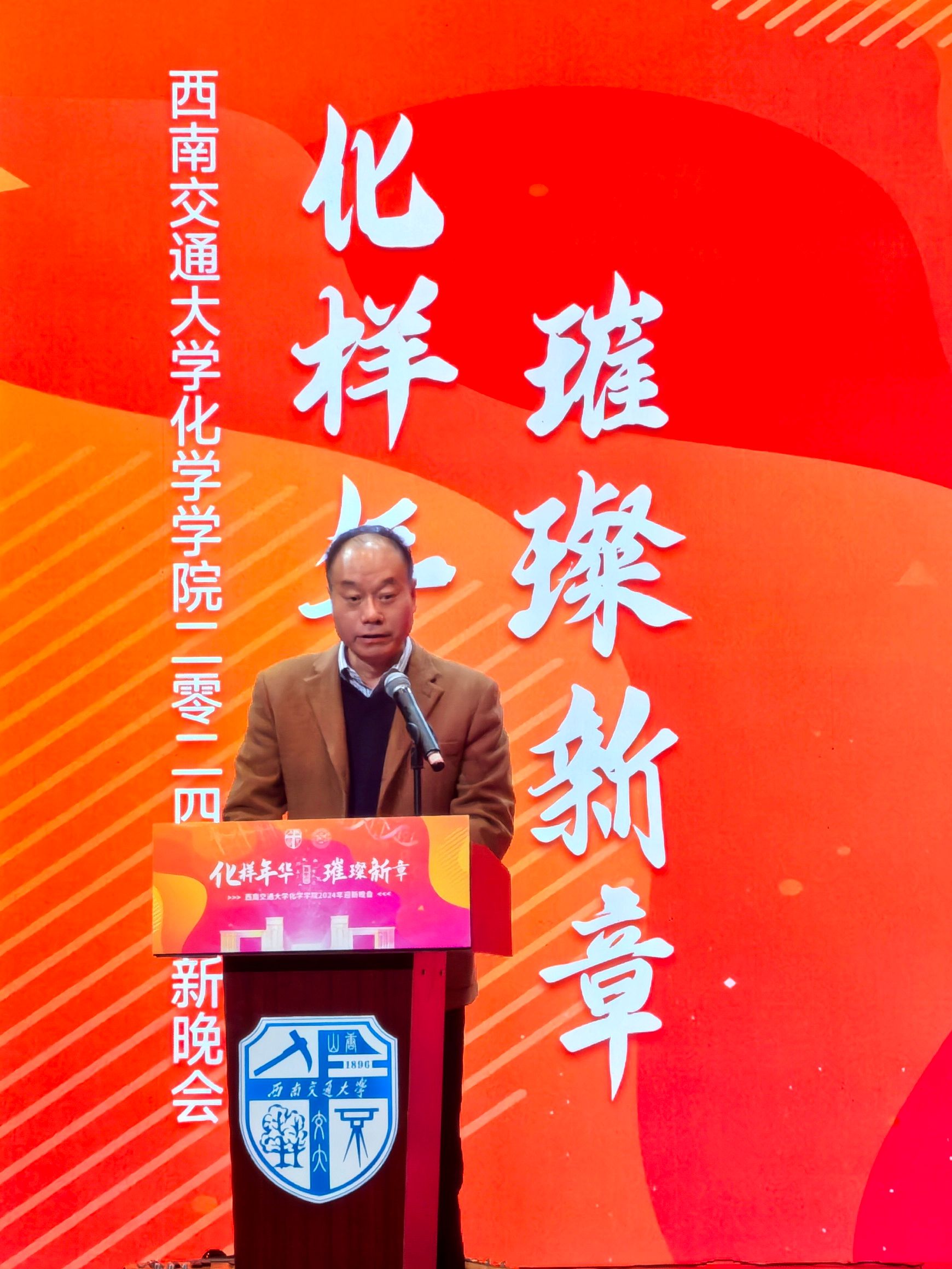 bevictor伟德官网经理周祚万教授为晚会致开幕辞。周经理首先向2024年加入公司的新老师、新同学们表示热烈欢迎,向全院师生以及关心支持公司建设发展的各级领导、老师、院友和各界朋友们致以新年祝福和诚挚感谢。随后,周经理回顾总结了这一年来bevictor伟德官网师生凝心聚力,奋力谱写公司高质量发展新篇章的工作成绩。展望未来,周经理表示,公司全体师生要上下一心、鼓足干劲,坚持不懈为公司的高质量发展贡献“化学人”的智慧和力量!